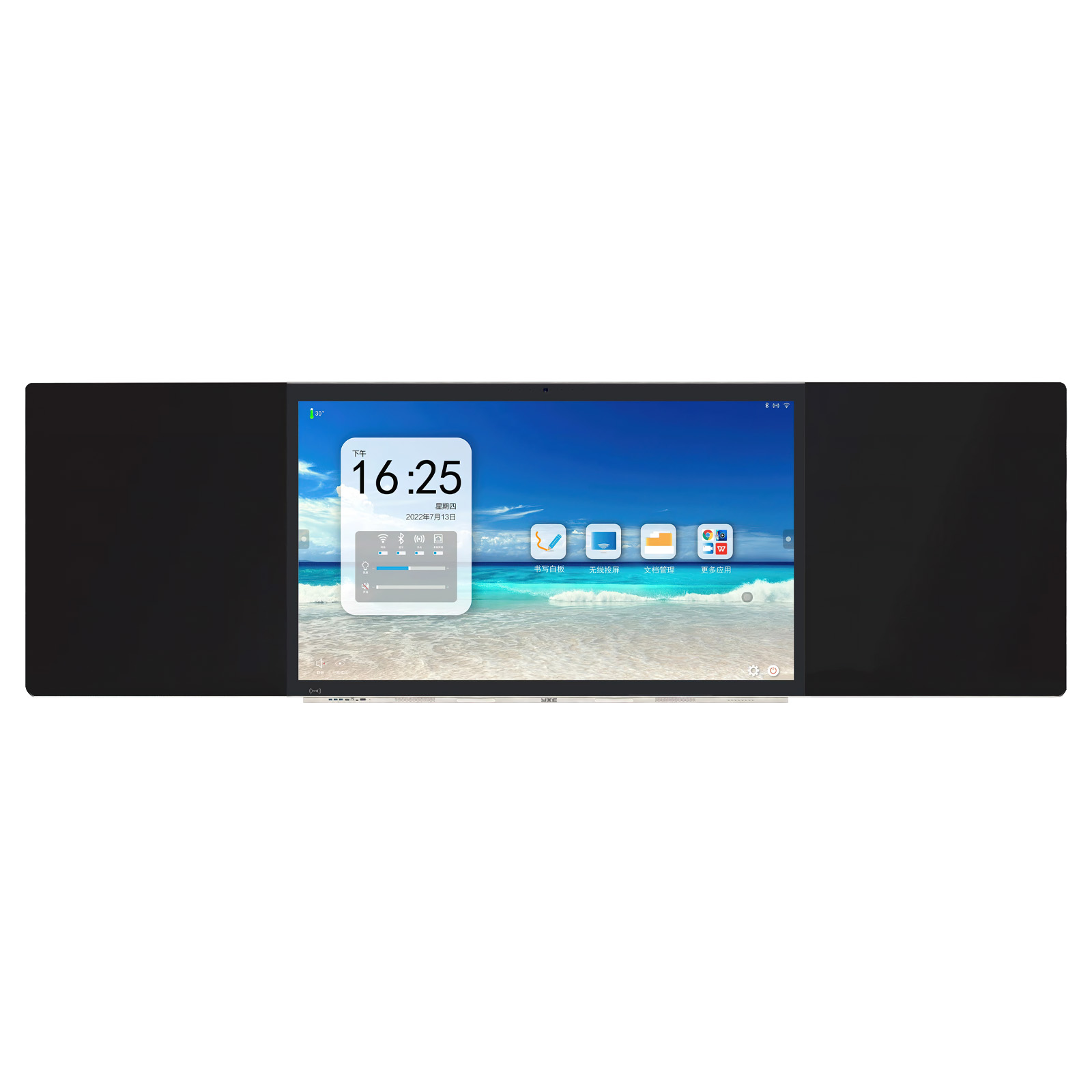 一、整機(jī): 1、 整機(jī)采用一體化設(shè)計(jì),正面顯示為一個(gè)由三塊拼接而成的平面普通黑板,可實(shí)現(xiàn)整塊黑板統(tǒng)一屏幕書寫。中間區(qū)域?yàn)長(zhǎng)ED液晶顯示屏幕,防眩光鋼化玻璃。 2、 左右側(cè)書寫板采用高抗反光納米材料,實(shí)現(xiàn)無反光效果,在任何角度均可清晰可見書寫筆跡。 3、 整機(jī)尺寸:長(zhǎng)≥4200mm、高≥1200mm、厚≦110mm,中間區(qū)域屏幕采用86英寸 LED 液晶屏,顯示比例16:9,具備防眩光效果。 4、 前置按鍵和接口,按鍵:電源,護(hù)眼,設(shè)置,音量+,音量-,圖像比例,錄屏,觸摸開關(guān)。 5、 前置接口:HDMI*1,Touch USB*1,USB*3,Type-C*1。 6、 側(cè)置輸入接口:HDMI*2,USB*2,VGA+AUDIO*1,YPBPR*1,AV*1,TF*1,RJ45*1,RS232*1; 7、 側(cè)置輸出接口:TOUCH USB*1,耳機(jī)*1,AV*1,同軸*1。 8、 整機(jī)具備前置OPS電腦系統(tǒng)一鍵還原隱藏式針孔按鈕,方便解決電腦系統(tǒng)故障。 9、 具備智能感光模塊,可根據(jù)環(huán)境光調(diào)節(jié)屏幕亮度。 10、 具備前置兩個(gè)書寫筆磁吸凹槽,書寫筆可吸附在凹槽內(nèi)。 11、 具有前置錄屏功能按鍵,可將主機(jī)中的課件、音頻和環(huán)境聲音同時(shí)錄制。 12、 內(nèi)置音箱:≥2*15W前置全頻揚(yáng)聲器。 13、 內(nèi)置1400 萬 COMS高清攝像機(jī),嵌入式設(shè)計(jì)與觸屏同平面,滿足交互式教學(xué)需要; 14、 內(nèi)置8陣列拾音麥克風(fēng)系統(tǒng),滿足視頻會(huì)議系統(tǒng)交互功能,采集范圍≥8米。 15、 整機(jī)內(nèi)置安卓嵌入式系統(tǒng),不低于Android 8.0版本;機(jī)身內(nèi)存不低于32G ROM,運(yùn)行內(nèi)存不低于3G RAM。 16、 具有五指手勢(shì)息屏及五指手勢(shì)屏幕喚醒功能。 17、 自持自定義設(shè)置開、關(guān)機(jī)時(shí)間。 18、 具備硬件系統(tǒng)檢測(cè)功能,對(duì)系統(tǒng)主板型號(hào)、內(nèi)存、存儲(chǔ)、CPU、系統(tǒng)軟件版本、觸控單元、OPS 模塊、光感、網(wǎng)絡(luò)等提供狀態(tài)提示信息。 19、 支持本機(jī)APP軟件管理,包括強(qiáng)制停止、卸載。 20、 內(nèi)置手機(jī)投屏軟件,可進(jìn)行手機(jī)投屏。 21、 具備鎖屏功能,可設(shè)置密碼解鎖、手勢(shì)解鎖,USB KEY解鎖。 22、 具備APP鎖定功能,可鎖定內(nèi)置任意APP,有效管控APP的使用。 二、觸摸與顯示系統(tǒng): 1、液晶顯示屏幕采用工業(yè)級(jí)A規(guī)液晶面板,圖像分辨率≥3840*2160;亮度≥350cd/㎡;可視角度≥178°。 2、采用先進(jìn)納米電容觸控技術(shù),觸摸模式:支持HID免驅(qū)技術(shù),無需安裝驅(qū)動(dòng)即可以實(shí)現(xiàn)多人同時(shí)書寫與操作功能,支持20點(diǎn)觸控。 三、內(nèi)置插拔式電腦: 1、 采用模塊化電腦方案,標(biāo)準(zhǔn)80針OPS-C電腦接口,外部無任何連線,方便老師使用與維護(hù)。 2、 處理器:Intel Core i5或以上 CPU;內(nèi)存規(guī)格:≥8G內(nèi)存;硬盤:≥256G 固態(tài)硬盤。 3、 顯卡:集成高清顯卡。 4、 網(wǎng)卡類型:1個(gè)千兆網(wǎng)卡Gigabit LAN。 5、 聲卡:集成6聲道音效 四、電子白板軟件 1、屏幕鎖定功能:可直接通過軟件實(shí)現(xiàn)一鍵鎖定、一鍵開啟觸摸功能,防止誤操作。 2、筆功能:提供鉛筆、軟筆、毛筆、紋理筆、半透明筆、對(duì)象筆、智能筆、彩筆等筆型,并提供多種線型,粗細(xì),顏色,透明度等屬性設(shè)置 3、擦除功能:提供對(duì)象擦、位圖擦、圖片擦,清除頁(yè)面等擦除方式。 4、圖形繪制:可實(shí)現(xiàn)圖形的快速繪制,包含直線、矩形、橢圓、圓、三角形、五邊形、五角星形、六邊形、箭頭、立方體、圓柱體、圓錐、三棱錐、四棱錐等,方便用戶快速的創(chuàng)建標(biāo)準(zhǔn)的圖形。。 5、輔助工具:提供放大鏡、直尺、圓規(guī)、直角尺、量角器、錄制、攝像頭、填色桶、探照燈、遮幕、數(shù)學(xué)輸入法、漢字筆畫等常用工具。 6、頁(yè)面功能:可提供白板頁(yè)、屏幕頁(yè); 7、透明頁(yè)標(biāo)注:可對(duì)電腦頁(yè)面進(jìn)行書寫、批注。 8、頁(yè)面操作:支持對(duì)頁(yè)面的整體放大、縮小、漫游、翻頁(yè)等,其中漫游功能支持對(duì)書寫頁(yè)面的無限放大和移動(dòng)。 9、直接調(diào)用外部攝像頭視頻;與數(shù)影儀(高拍儀)、具備準(zhǔn)攝像頭接口的視頻展臺(tái)完美結(jié)合,一鍵調(diào)用。 10、手寫識(shí)別,支持手寫體直接轉(zhuǎn)為印刷體,并實(shí)現(xiàn)快速注音。 11、插入對(duì)象:圖片支持PNG/BMP/JPG等格式的插入;音頻支持MP3/WAVC等格式的插入;視頻支持MP4/WMV/MPG/RMVB/AS等格式的插入;支持WORD\EXCEL\PPT等文件的插入。 12、雙屏?xí)鴮懀壕哂须p屏?xí)鴮懝δ?br /> 13、軟件升級(jí):軟件提供終身免費(fèi)升級(jí)服務(wù)。 |