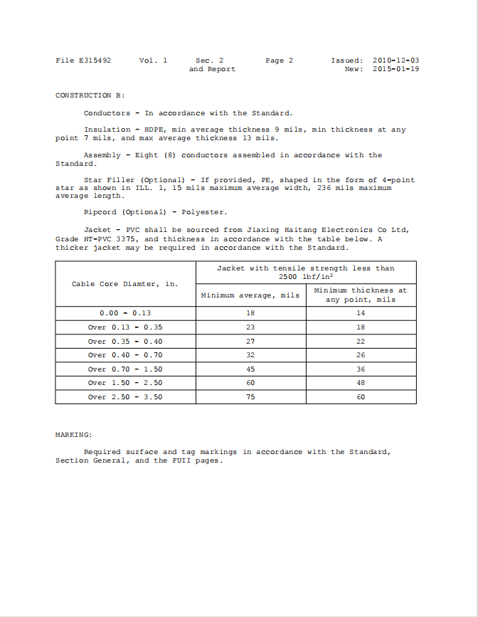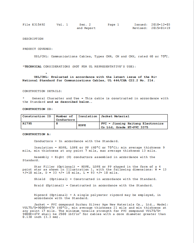Power-Limited Circuit Cable-E475167UL認(rèn)證