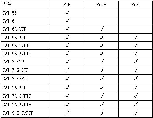 IEEE802.3 工作組在2012年末業(yè)界又推出POH-POWEROVER HDBASET. 利用現(xiàn)行的4-Pair 四對線技術(即8根線全部供電),雙邊供電達到60-100W功率,使用5或6類線即可達到。應用在高清視頻推播供電給42"LED電視機,美國2010年新規(guī)定42"LEDTV 耗電需要低於70W,這樣的話液晶電視將來也可使用poe供電。