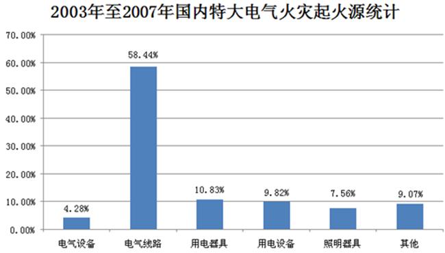 綜上所述,我們可以看出,電氣起火是火災(zāi)的主要原因,而電氣線路是主要起火源,主要都是因為電線由于老化等原因?qū)е戮€路短路而引起火災(zāi)。