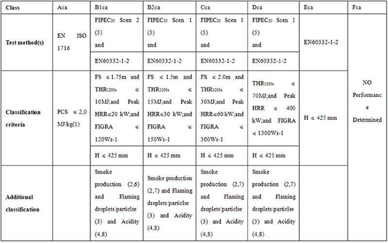 垂直火焰蔓延、總釋放量、最大釋放率量、燃燒增長率指數(shù)。額外等級主要測量:煙密度和燃燒滴落。