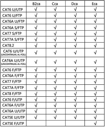 嘉興海棠電子目前除開CAT5E F/UTP產(chǎn)品,超五類網(wǎng)線至八類網(wǎng)線各規(guī)格都支持B2ca、Cca、Dca、Eca每個等級。