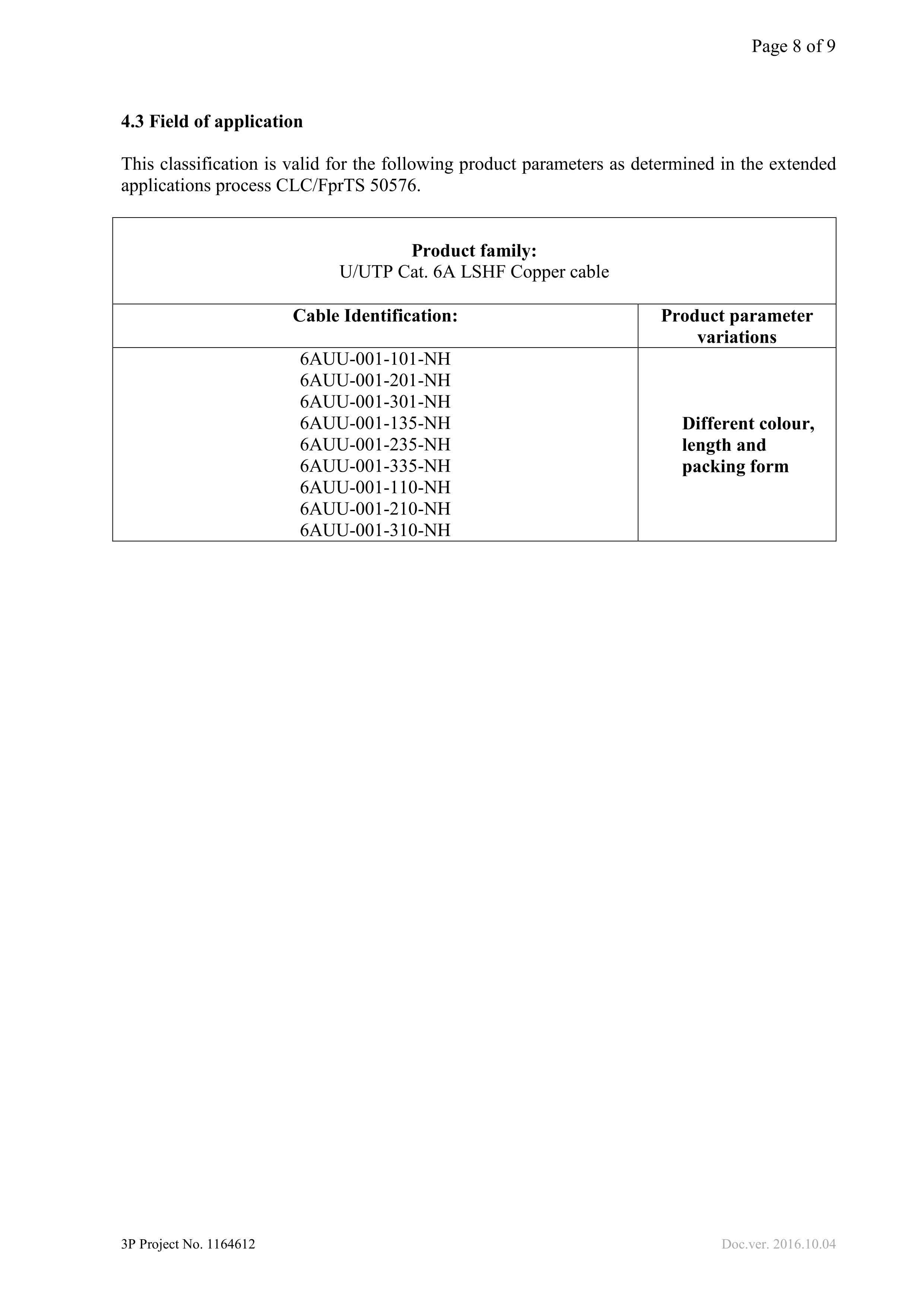 UUTP Cat.6A LSHF Copper cable 3P CPR E級認證